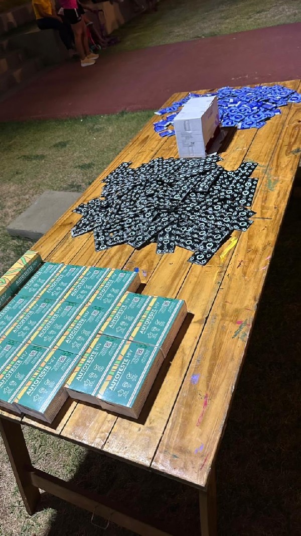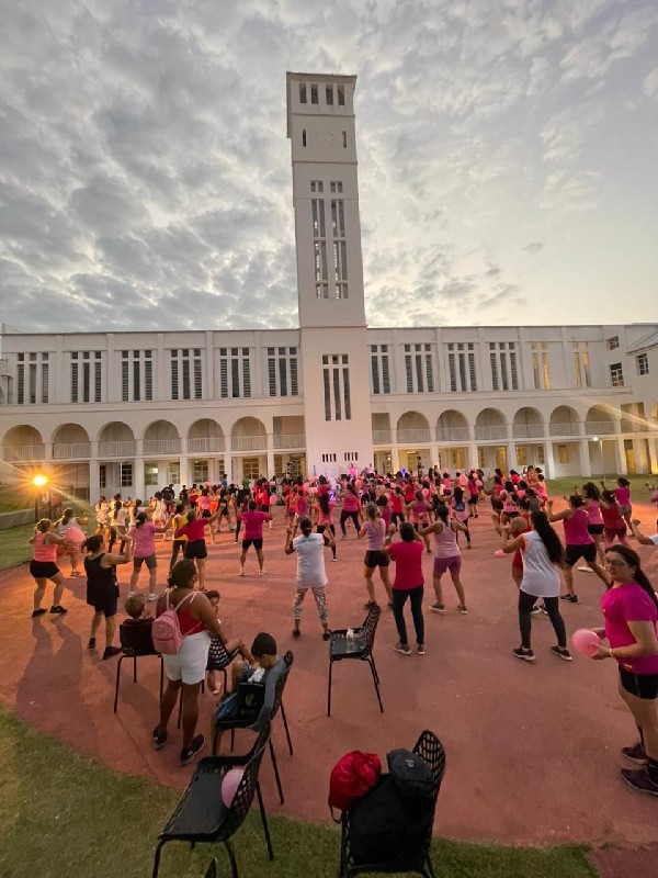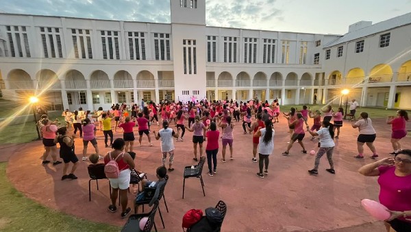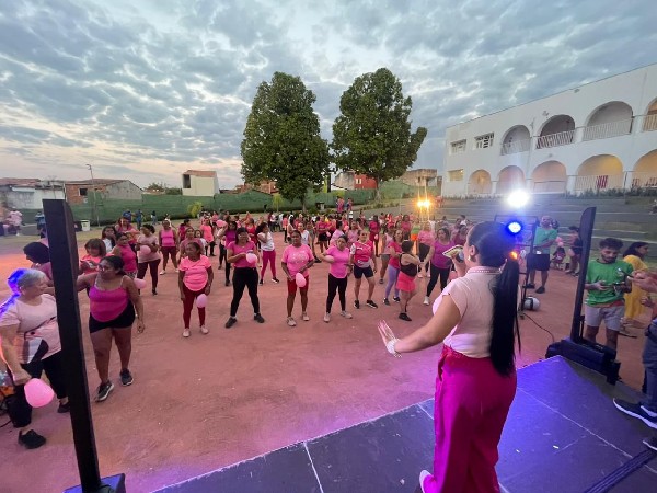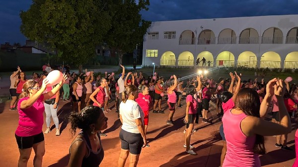 Durante o aulão, o público acompanhou uma animada sessão de dança conduzida por instrutores do projeto. Paralelamente, as equipes de saúde ofereceram testes rápidos, aferição de pressão arterial, verificação de glicemia, atualização vacinal e distribuição de preservativos, além de orientações sobre prevenção, autocuidado e diagnóstico precoce do câncer de mama, tema central da campanha.
