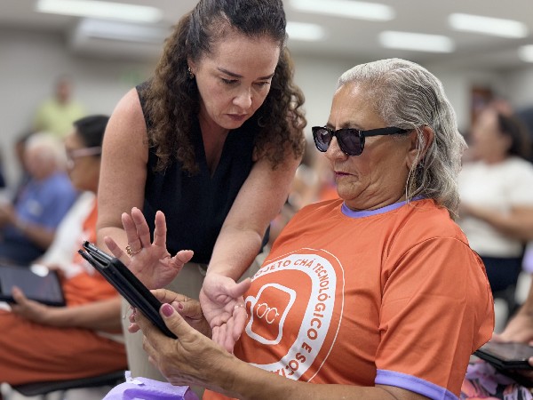 O Chá Tecnológico é uma atividade desempenhada de forma itinerante em todo o Ceará, para o público a partir dos 60 anos de idade. O projeto consiste em estimular o conhecimento de pessoas dessa idade no campo digital e tecnológico, oferecendo mais segurança e independência para o uso correto da internet, com mais qualidade de vida, através da inclusão sociodigital. Também aprimora os conhecimentos em tecnologia para uso do celular e da internet no cotidiano, e aplicativos de interação como o WhatsApp, configurações do celular, aplicativos de banco, carros por aplicativo e outras funções.
