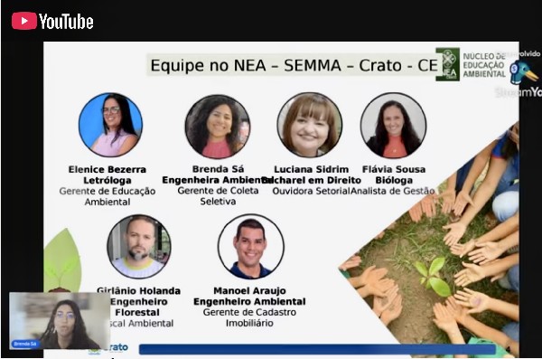 A Prefeitura do Crato, através da Secretaria Municipal de Meio Ambiente e Mudança do Clima, participou, na manhã desta quinta-feira, 30, da Campanha do Programa Brasil Sustentável, Consciência que Floresce, com a palestra Realidades: O Impacto da Educação Ambiental em Crato, proferida pela gerente de Coleta Seletiva, do Núcleo de Educação Ambiental (NEA), Brenda Tamires Conceição. O evento foi realizado através do Instituto Climático Von Bohlen & Halbach.