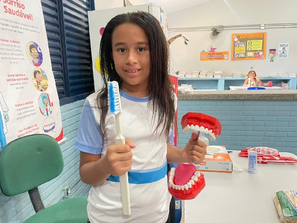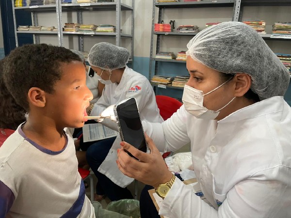 As crianças também passam por exames clínicos e recebem aplicação tópica de flúor em verniz nos primeiros molares permanentes, realizada por profissionais capacitados e treinados para esta função.