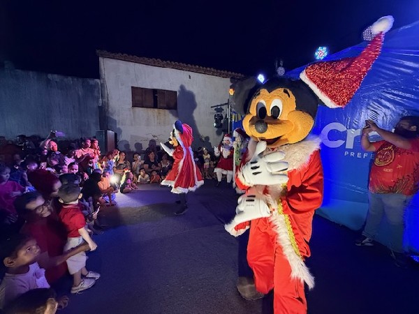 Após a abertura, o bom velhinho e Mamãe Noel adentraram o palco para a alegria da criançada. Em seguida, foram realizados os shows com os personagens que levaram animação para a turminha. No final, foram entregues sacolinhas com guloseimas para o público, cachorro quente e refrigerante.