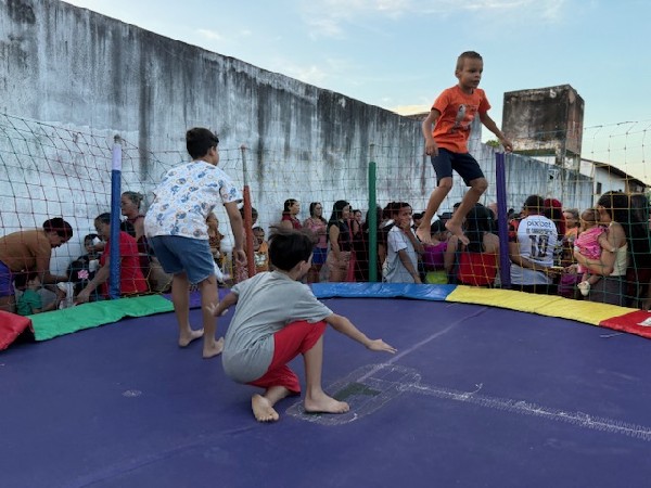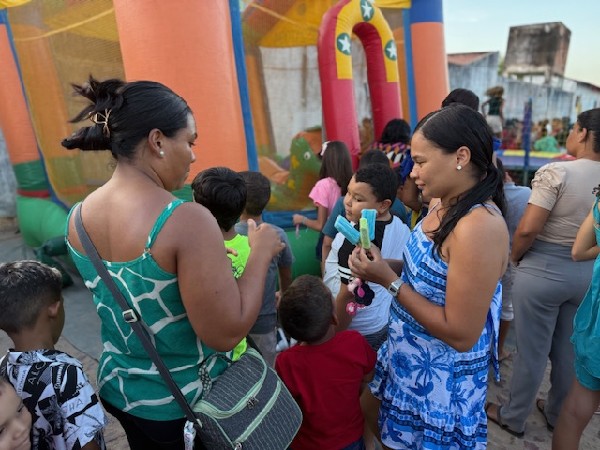 A equipe da assistência esteve reunida logo cedo para recepcionar o público infantil, que pode aproveitar os brinquedos infláveis como o pula-pula, degustar bastante algodão doce, pipoca, cachorro quente, refrigerante e guloseimas.