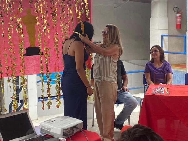 Professores prestaram homenagens aos alunos concluintes, seguidas pela fala de gratidão dos estudantes, que retribuíram o carinho e a dedicação recebidos ao longo dos anos. Um dos momentos mais aguardados foi a entrega do Oscar DQ, celebrando talentos, amizades e histórias construídas na escola.