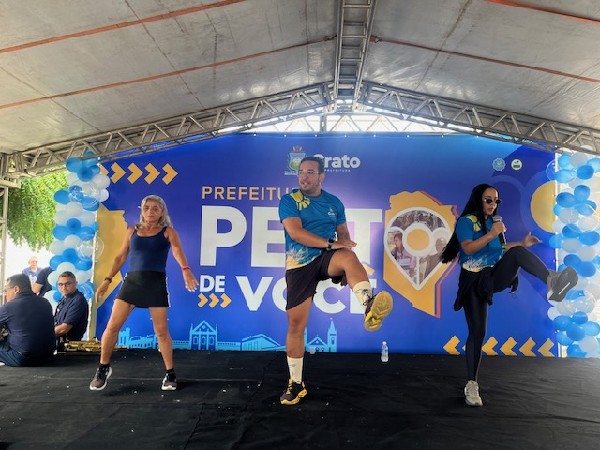 A Defesa Civil levou orientações sobre prevenção de riscos, enquanto o esporte ganhou espaço com atividades de dança e funcional por meio do projeto Crato em Movimento.