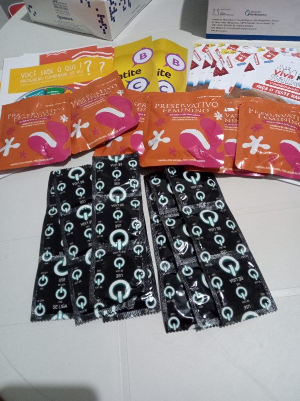 Foram ofertados serviços de verificação de sinais vitais, testes de glicemia, testes rápidos de Hepatites, HIV, peso e altura, orientações de nutrição e, ainda, distribuição de materiais informativos e preservativos masculinos e femininos.