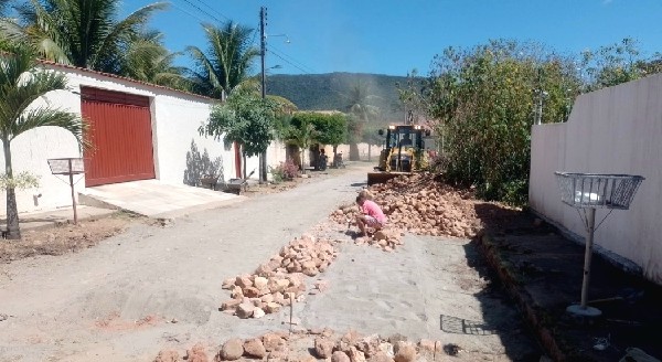 Nas ruas Florisval Alves de Matos e Carlina Pinheiro, no Lameiro, a Seinfra está recuperando trechos do calçamento e fazendo a recomposição de sarjetas e meios-fios.