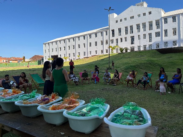Após seis encontros, as gestantes recebem um kit natalidade contendo banheira, bolsa, e itens de higiene. Na ocasião, estiveram presentes a gestora da SMDS, Ticiana Cândido, e a coordenadora do CRAS Alto da Penha, Elizângela Gouveia.