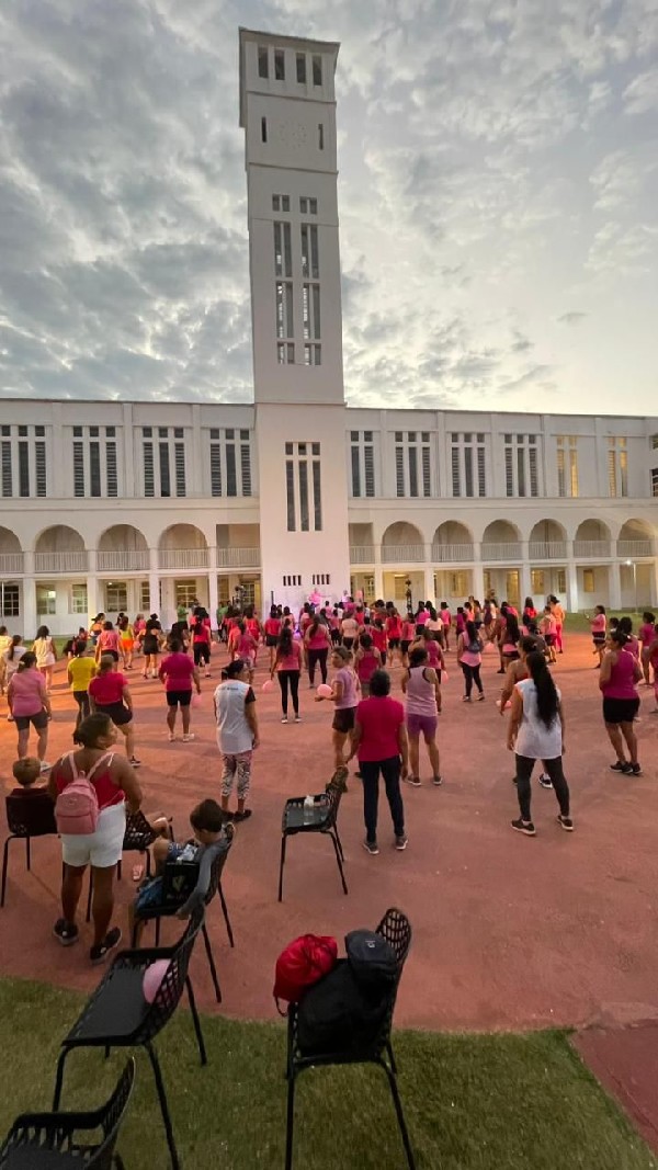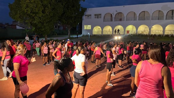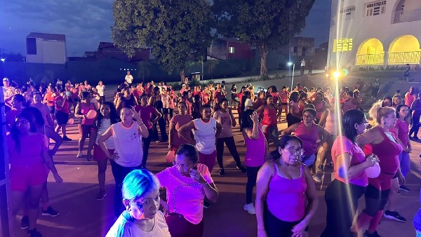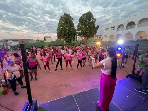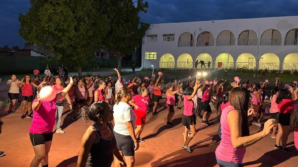 Durante o aulão, o público acompanhou uma animada sessão de dança conduzida por instrutores do projeto. Paralelamente, as equipes de saúde ofereceram testes rápidos, aferição de pressão arterial, verificação de glicemia, atualização vacinal e distribuição de preservativos, além de orientações sobre prevenção, autocuidado e diagnóstico precoce do câncer de mama, tema central da campanha.