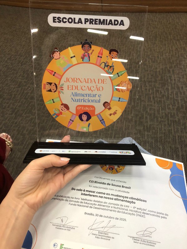 A Escola CEI Rivaldo de Sousa Brasil foi selecionada com a atividade "Do solo à mesa: como as mudanças climáticas interferem na nossa alimentação", destacando-se entre as melhores práticas do país. O trabalho foi publicado no livro "Melhores Relatos da Jornada de EAN