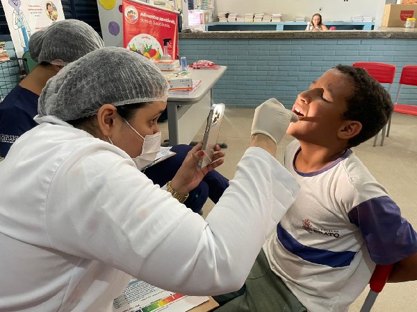 As crianças também passam por exames clínicos e recebem aplicação tópica de flúor em verniz nos primeiros molares permanentes, realizada por profissionais capacitados e treinados para esta função.