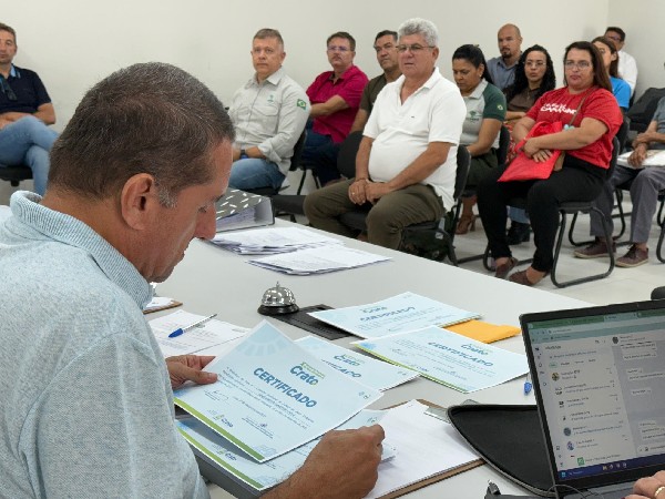 Realizada na manhã desta quarta-feira, 17, a posse dos novos membros do Conselho Municipal de Defesa do Meio Ambiente do Crato (COMDEMA) e a 11ª reunião da diretoria, além da entrega de certificados pela atuação dos seus integrantes ao longo do mandato anterior. A solenidade contou com a presença do prefeito, André Barreto, e do presidente do conselho, George Borges, também secretário de Meio Ambiente e Mudança do Clima. Próximo ano, o conselho, um dos mais antigos do interior do Ceará, fará 20 anos de atuação.