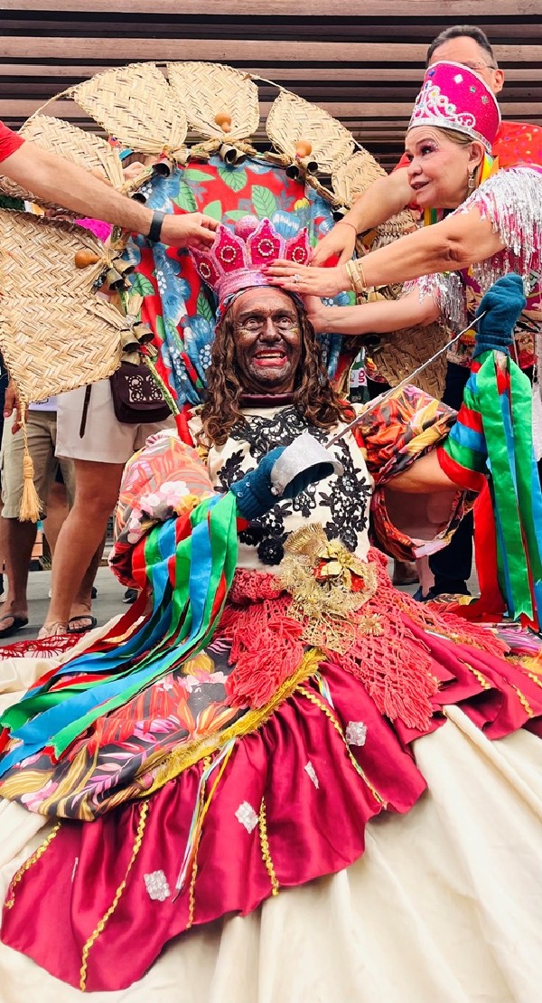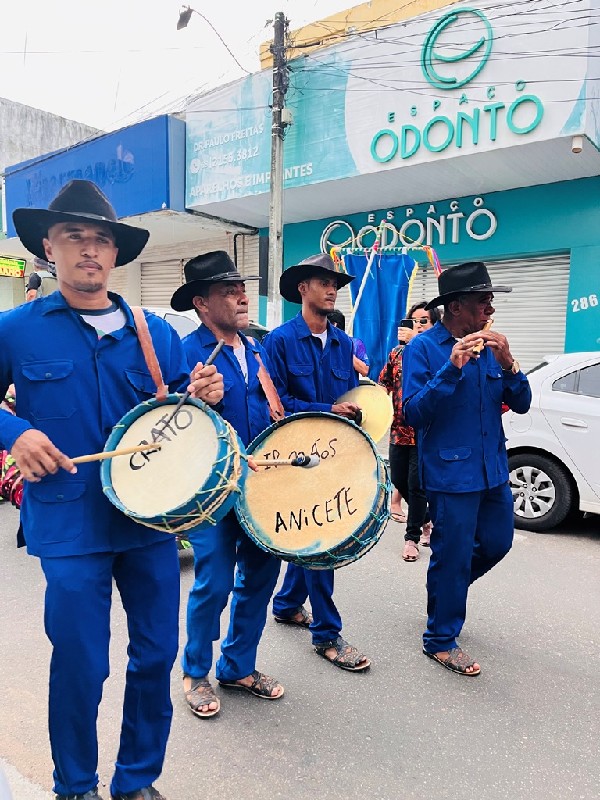 Antes do início do cortejo, a Praça Siqueira Campos sediou a homenagem a João do Crato, multiartista e patrimônio cultural do município. A reverência foi conduzida pelo Bloco Sem Medo de Ser Feliz, que destacou a trajetória do artista como referência fundamental para a identidade cultural do Cariri. Em sua fala, João do Crato agradeceu o reconhecimento e ressaltou o significado da homenagem em meio à festa popular.