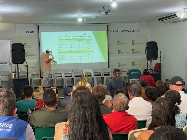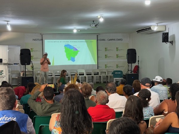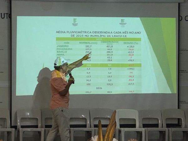 O professor do IFCE, Danusio Sousa, fez uma breve apresentação dos índices relacionados às chuvas no ano passado, e as perspectivas para esse ano, conforme a meteorologia. Segundo ele, o fenômeno El Nino pode vir mais forte nos próximos meses provocando a redução das chuvas. "A gente espera que esse ano o agricultor consiga uma produção maior", diz.